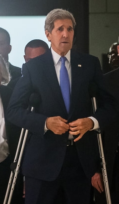 Head spinning yet? Well, then let’s get back to the spin itself. The only photo in the New York Times article was of Secretary of State John Kerry coming out a briefing with U.S. Congressional officials on the Iran deal. It’s now my favorite photo of him (see left). Not only is he on crutches, giving that air of …umm…strength and confidence – but his face says “I think I just crapped myself”. Round it out with the bloodshot eyes and the face that looks like a whoopie cushion – after the whoopie, and a star is born. (Barf)