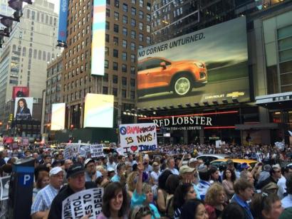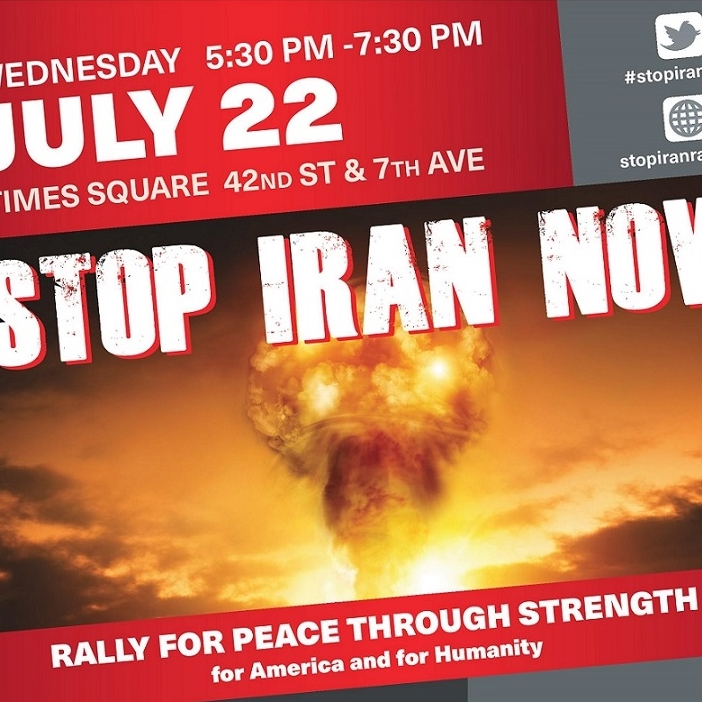 So, with this insane pressure everywhere to get a story, any story – and get it before your competitors do – you’d think that news organizations would fall all over themselves for a story that just naturally develops, such as the one on Wednesday evening, July 22 in New York City’s Times Square, when up to 12,000 people gathered to send a message to the US Congress not to vote “Yes” on the Iranian nuclear agreement, as presented to them earlier in the week by “Psychobama’s” goons.