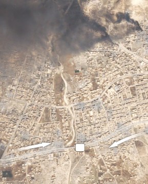 Satellite map showing the first day of fighting over the city of Sinjar, which Kurdish forces retook from ISIS on November 13. (Credit: Planet Labs)