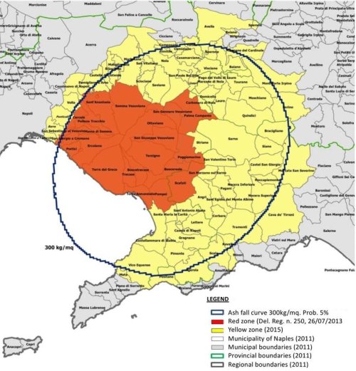 Today, the city of Naples, Italy has a metro population of over 6.8 million people – nearly the size of the Greater Houston-Gulf Coast region – America’s 5th largest city – and all living within about 20 kilometres of the giant volcano. 600,000 of those people live even closer, in the red zone (a distance of 10 kilometres from the crater) – which would put them in a direct path of deadly lava flows.