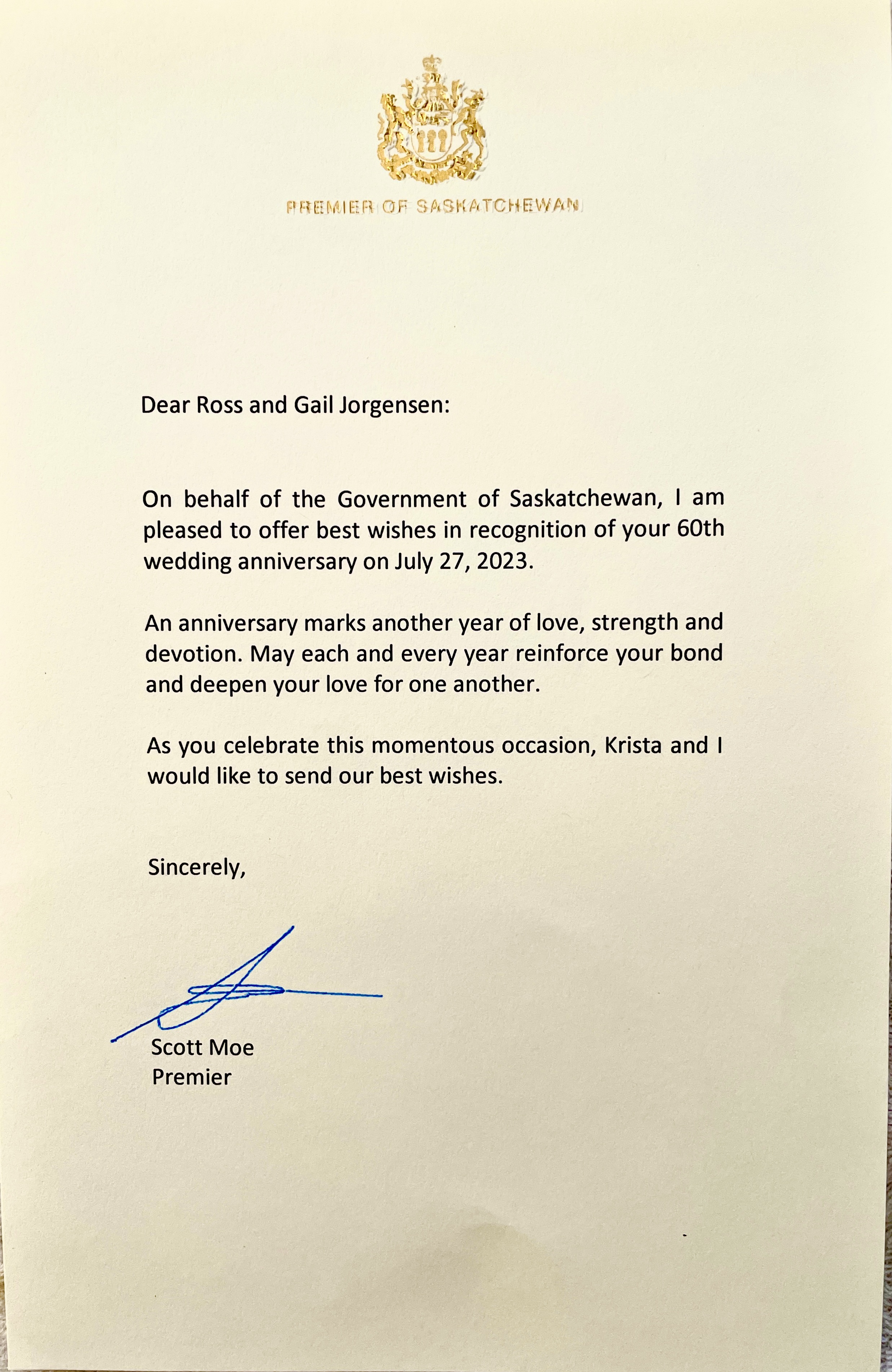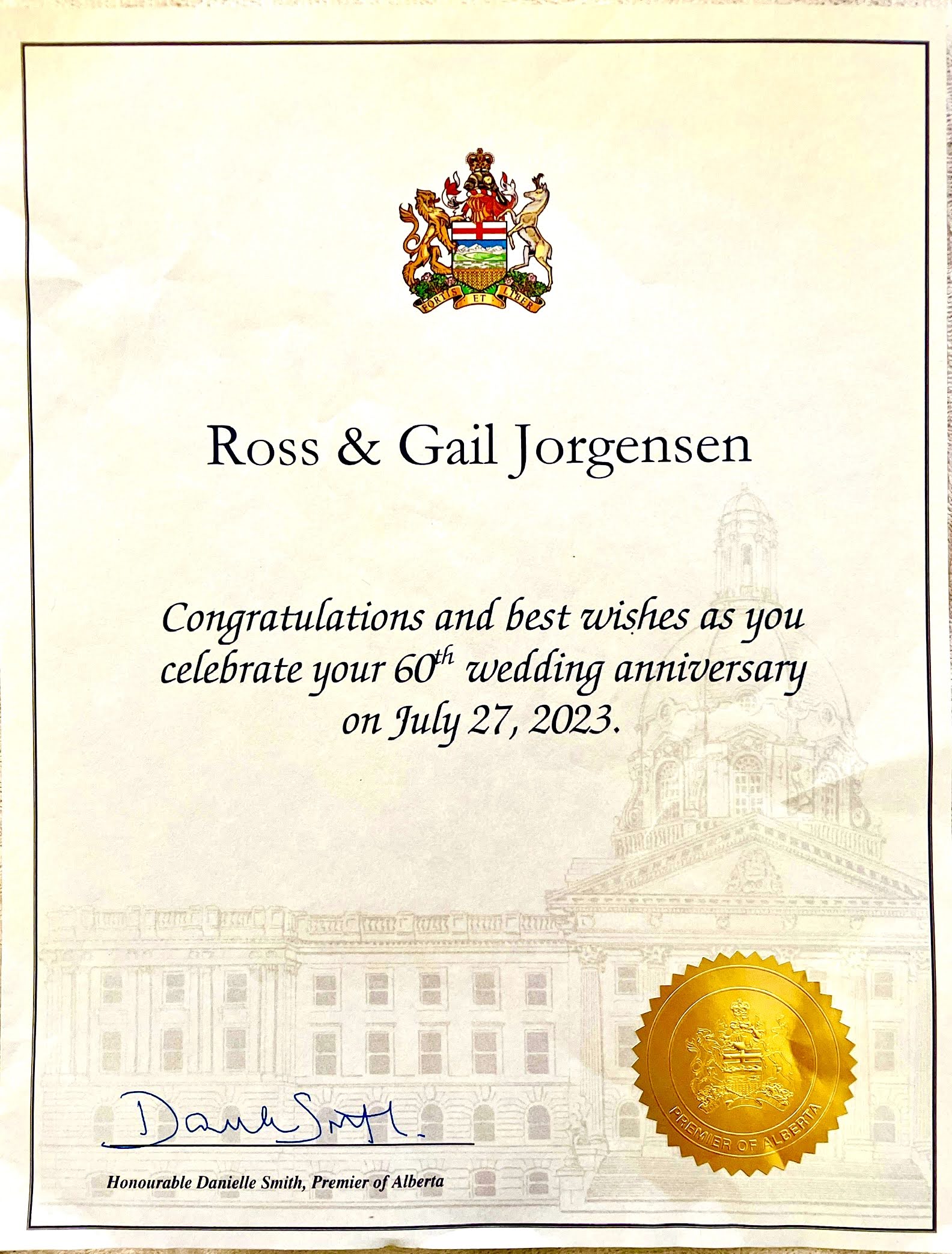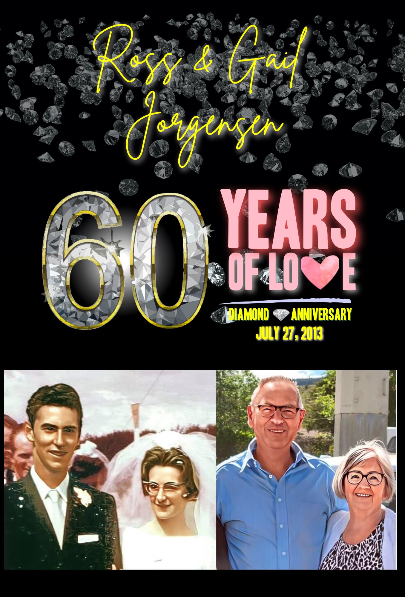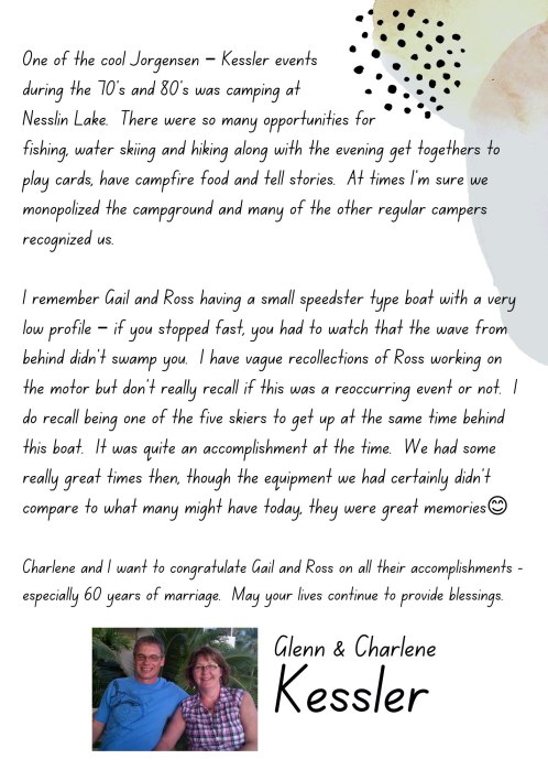 This special book of congratulations and memories was put together by Shawn Jorgensen, as his main gift to his parents, Ross & Gail Jorgensen, on the occasion of their 60th Wedding Anniversary – July 27, 2023.